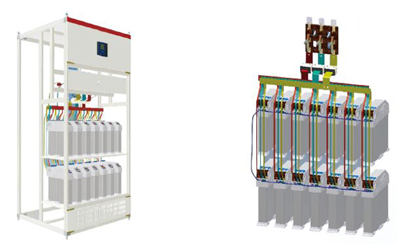 產(chǎn)品在柜體中積木式組裝,構(gòu)成無功自動(dòng)補(bǔ)償裝置,打破傳統(tǒng)自動(dòng)補(bǔ)償裝置的結(jié)構(gòu)模式,如下圖所示,具有電容器零投切等優(yōu)異功能以及結(jié)構(gòu)簡潔、同樣柜體可裝更多電容器、生產(chǎn)簡易、容量可調(diào)整性好、運(yùn)行維護(hù)方便等優(yōu)點(diǎn)。